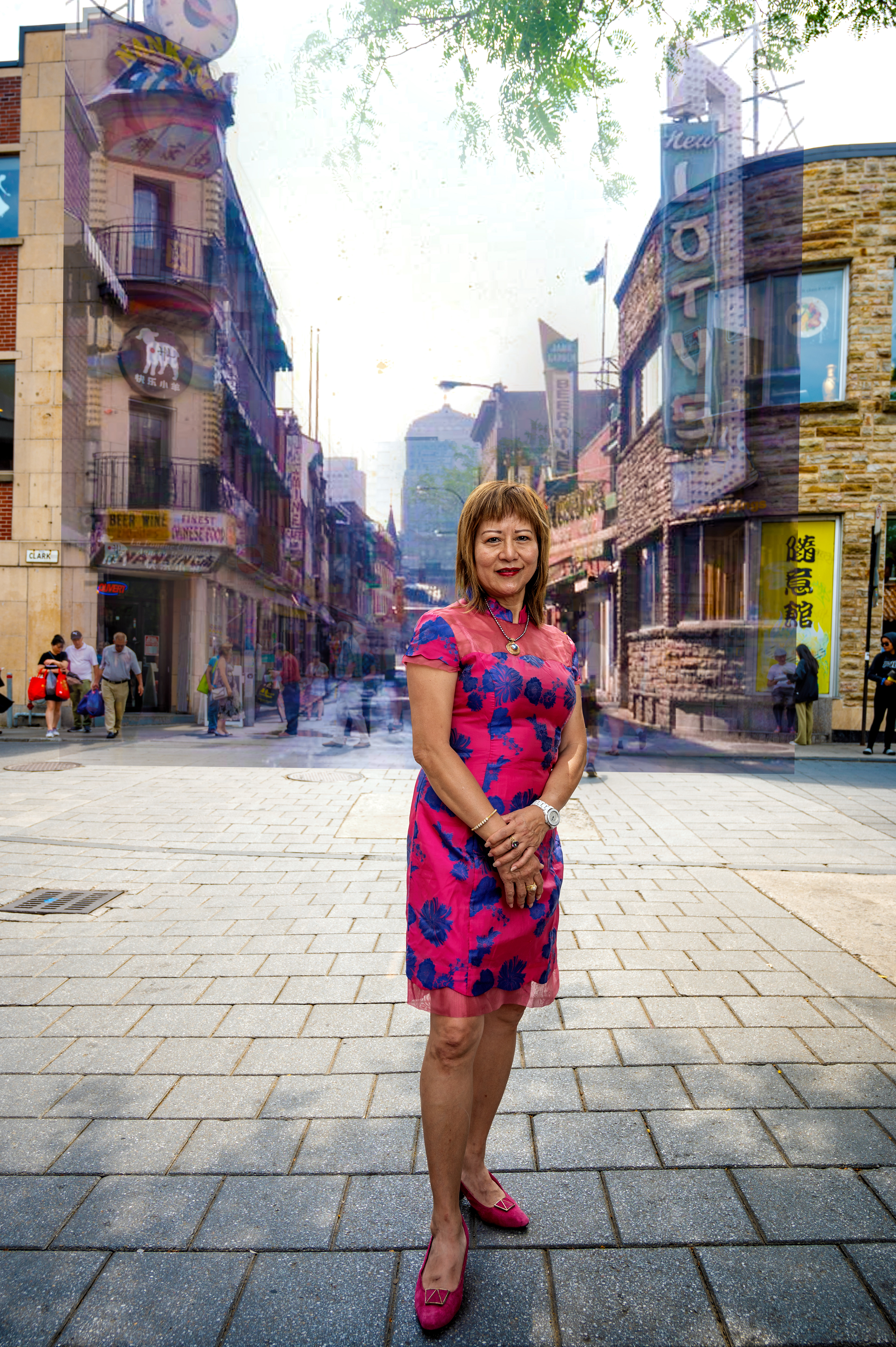 Le Quartier chinois symbolise nos racines, la lutte historique des Chinois pour survivre dans les pays étrangers, en essayant de préserver nos coutumes et nos traditions à travers des festivals, des célébrations et des rassemblements. Arrivée de Hong Kong dans les années soixante-dix, il y avait beaucoup d’étudiants chinois. Certains vivaient à l’intérieur de l’Église catholique chinoise, qui disposait d’un dortoir et d’une grande cour. Ces derniers ont été démolis par la construction du complexe Guy-Favreau en 1984, qui a réduit le Quartier chinois à l’ouest. J’ai rencontré mon défunt mari français, dans un restaurant chinois aujourd’hui disparu. À l’époque, il était tabou de former un couple interracial. J’ai rencontré beaucoup de résistance de la part de ma famille et de mes amis. Finalement, nous avons organisé notre banquet de mariage au restaurant Lotus Garden (à l’angle de Clark & De La Gauchetière).